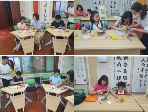 在专业老师讲解了中国扇文化及其背后所蕴含的深厚艺术内涵后,参加活动的家长和孩子们用心感受、细心观察,将西式压花和中式团扇相结合,在制作过程中体验快乐的亲子时光。